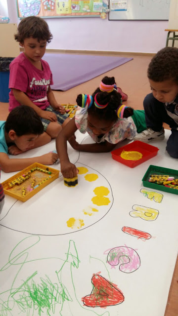 En el de animales hemos hecho ranas. Ya os enseñaremos el resultado porque se están secando.